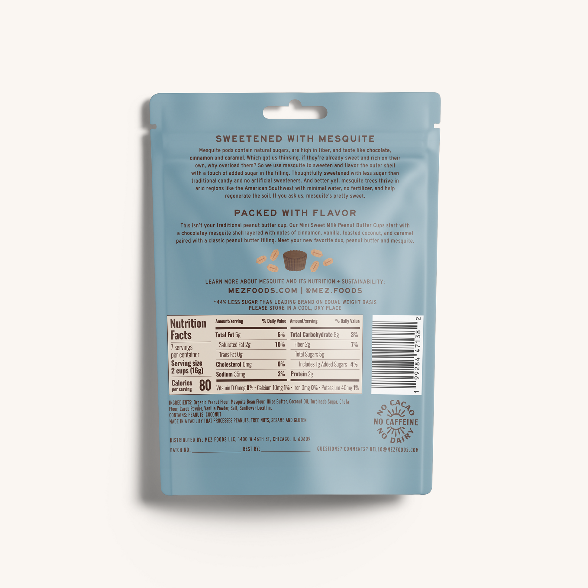 These aren’t your traditional peanut butter cups. Sure, you might start to think "well, back in my day…" but after one bite, it’ll turn into "pass me another." Our Mini Sweet M!lk Peanut Butter Cups start with a cocoa-free, chocolatey mesquite shell layered with notes of cinnamon, vanilla, toasted coconut, and caramel. And the peanut butter filling brings that comforting, timeless flavor you know and love. Meet your new favorite duo, peanut butter and mesquite.